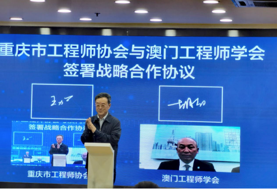 大会第二阶段,首先,市科协党组成员、副主席谭明星宣读中国工程师联合体贺信。市人大常委会副主任沈金强和中国工程院院士、市科协主席潘复生共同为“重庆工程师联合体”揭牌。接下来,重庆大学、重庆华森制药股份有限公司、大足区工程师协会等代表作大会交流发言。之后,由重庆市工程师协会与澳门工程师学会线上签署战略合作协议。吴国雄校长作为院校及教育界代表,参加了本地区校企合作培养卓越工程师线下签约仪式。