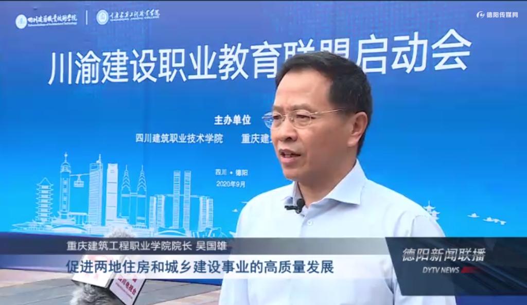 四川电视台、德阳电视台、德阳日报、德阳晚报等多家媒体,专题采访了重庆建筑工程职业学院院长吴国雄教授。吴院长表示,“川渝两地建设行业高等职业教育联合发展,是积极推动成渝地区双城经济圈建设由战略部署向战略行动转化的举措之一。两校牵头成立川渝建设职业教育联盟,目的是为了整合川渝两地建设教育资源,助力打造西部职教高地,服务成渝地区双城经济圈建设,促进川渝两地住房和城乡事业高质量发展。”