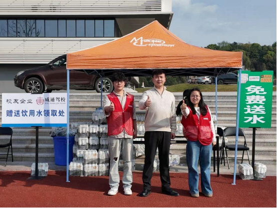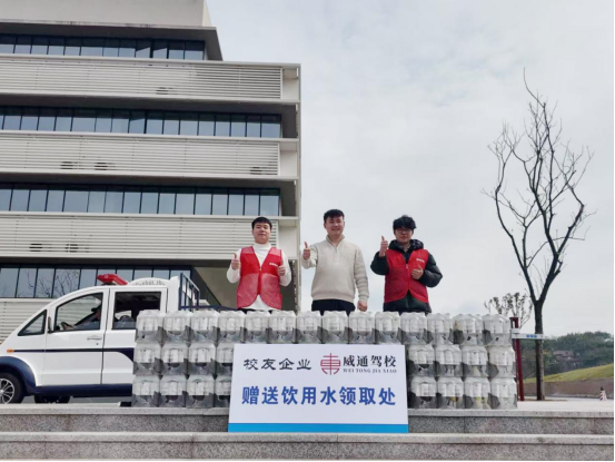 谢怡帆校友虽已离校创业,执掌威通驾校稳步发展,却始终关注母校发展,惦念着刻苦训练的学弟学妹们。得知新生们迎着春日晨光认真开展军训,他第一时间筹备物资,以捐赠饮用水的方式,为训练中的学子送去贴心关怀,缓解训练疲惫,希望同学们能以更充沛的精力投入到军训与后续学习生活中。