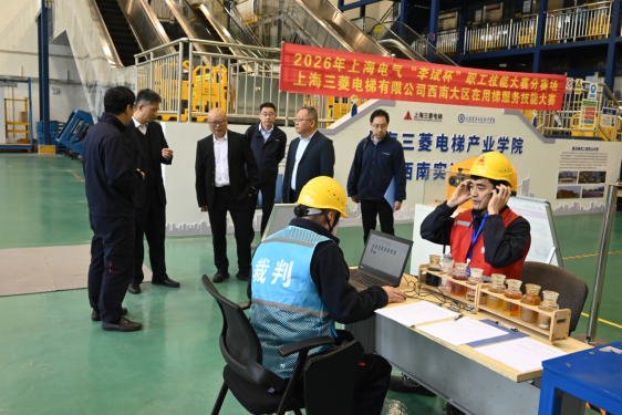 本次竞赛为期两天,由上海三菱电梯从西南四省(区、市)选拔出的50余名电梯维保精英参赛,设六大组别,覆盖全岗位全层级,考核包含理论、红线、操作技能、现场答辩等维度。学校24级电梯订单班师生全程观摩,直观感受企业技术能手的匠心与职业素养,近距离感受电梯维保岗位在保障民生中发挥的重要作用。智能制造学院教师陈佳佳、赵胜超代表学校参赛并获得优秀奖,促进了学校“双师型”教师技能提升,为电梯维保教师团队教育教学积累了实践经验。