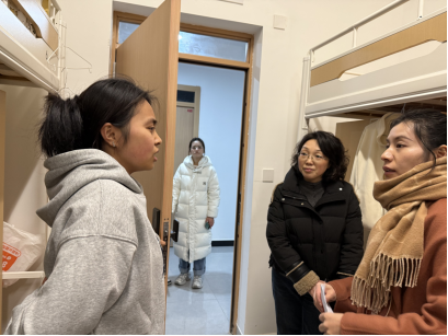 走访过程中,学院领导带队逐一走进学生宿舍与同学们亲切交流,仔细询问大家的复习进度、身心状态、元旦节安排以及生活中是否存在困难。在宿舍里,老师们认真查看住宿环境,叮嘱同学们注意冬季安全,保持良好作息,以饱满精神状态和健康的身体迎接考试。