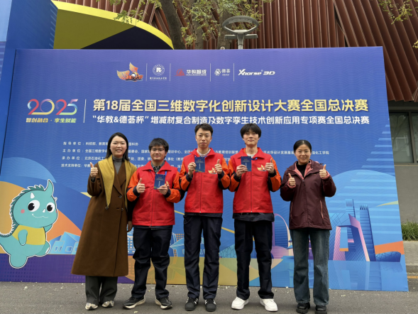 2025年11月15日,第十八届全国三维数字化创新设计大赛“华教&德荟杯”增减材复合制造及数字孪生技术创新应用专项赛全国总决赛在北京石油化工学院圆满落幕。我校智能制造学院由陈佳佳、郭晶老师指导,学生谷福生、龚洪平、陈华组成的参赛团队,经过与全国顶尖队伍的激烈角逐,最终凭借其优秀的创新设计作品与扎实的技术实践能力,荣获全国总决赛二等奖,充分展现了我校在智能制造领域人才培养的显著成果。