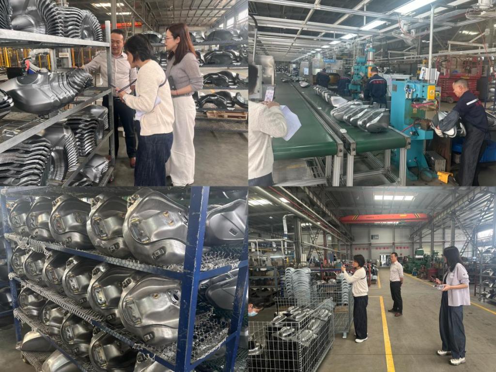 座谈会结束后,在企业负责人带领下,教研室教师深入生产车间,实地参观了机车油箱加工与喷涂生产线。教师们近距离观察了油箱冲压、焊接、打磨、喷涂等全流程作业,详细了解了自动化喷涂设备的操作规范、工艺参数控制及产品质量检测标准,交流了智能装备在提升生产效率、保障产品品质方面的应用前景,直观感受了企业先进的生产管理模式和技术实力,为后续优化课程、丰富实践教学内容积累了宝贵的一线经验。