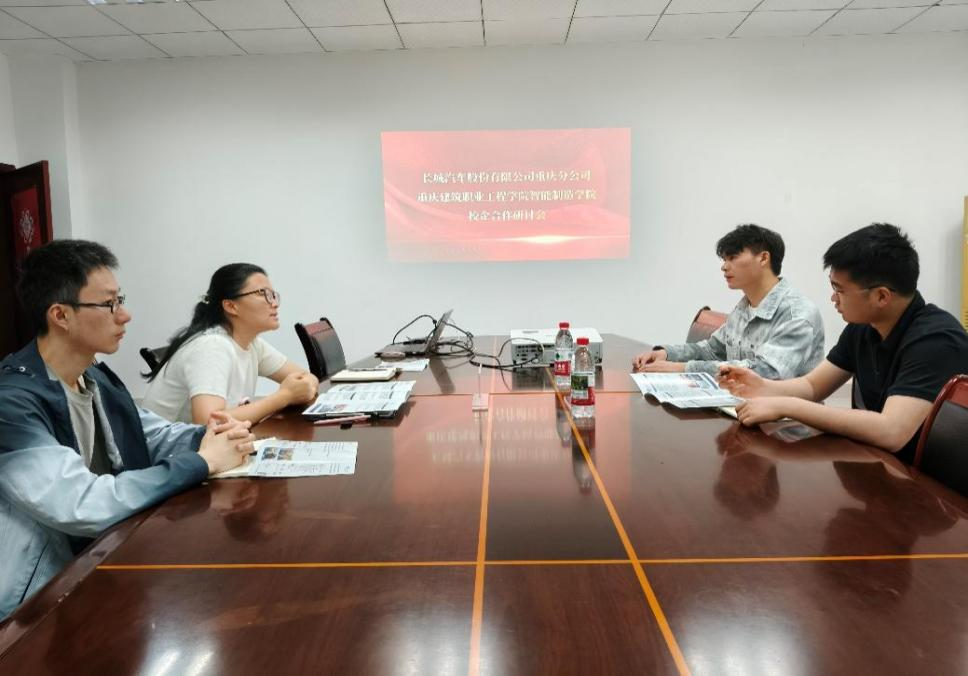为深入推进产教融合、赋能职业教育高质量发展,2026年4月17日,长城汽车股份有限公司重庆分公司西南区域招聘负责人曾宪旗一行莅临重庆建筑工程职业学院,就产业学院建设、人才培养、实训基地共建等事宜开展座谈交流。学校智能制造学院党总支副书记廖岚,骨干教师刘基雄、王楷雯出席座谈会。