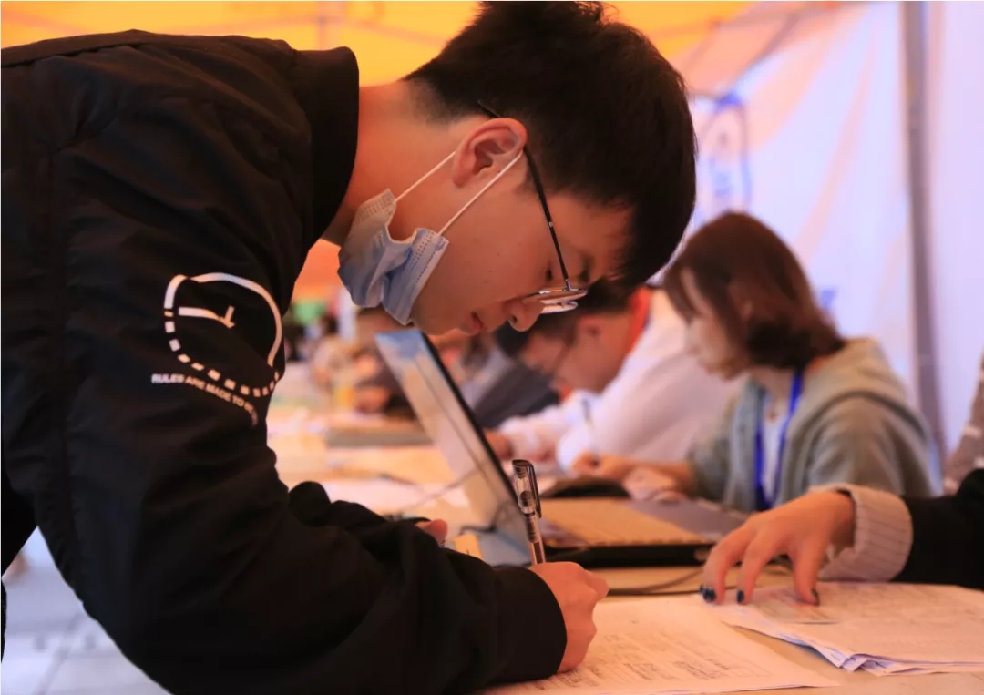 迎新现场,各部门、各系部早早集结、有序就位。疫情防控常态工作下,为确保新生平安入学,学校进行了周密部署,进校前测温、验码、核对身份,一项也不能少。而熙熙攘攘的人群里,那一抹建工“橙”足够让远离家乡的萌新们安心。他们积极热情地为初来乍到的新同学解答疑惑、搬运行李、指引接待,有条不紊地引导他们完成新生报到的所有程序。
