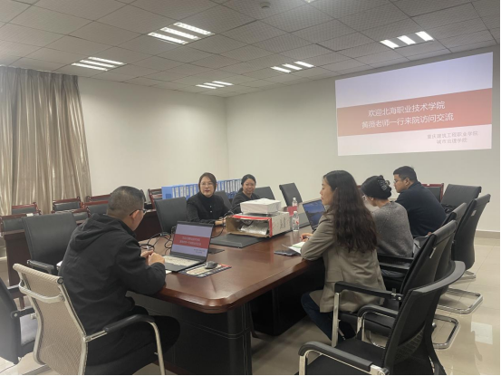 11月6日,北海职业技术学院文化与传媒学院黄薇主任、马云老师一行莅临重庆建筑工程职业学院城市治理学院进行访问交流。骆文进副院长代表学院对兄弟院校同仁的到访表示热烈欢迎,双方围绕智慧城市管理技术专业的申报与建设经验进行深入探讨。院长助理王玉合博士主持交流会,智慧管理教研室主任唐德莎博士及校企合作单位广联达集团魏然经理参与座谈交流。
