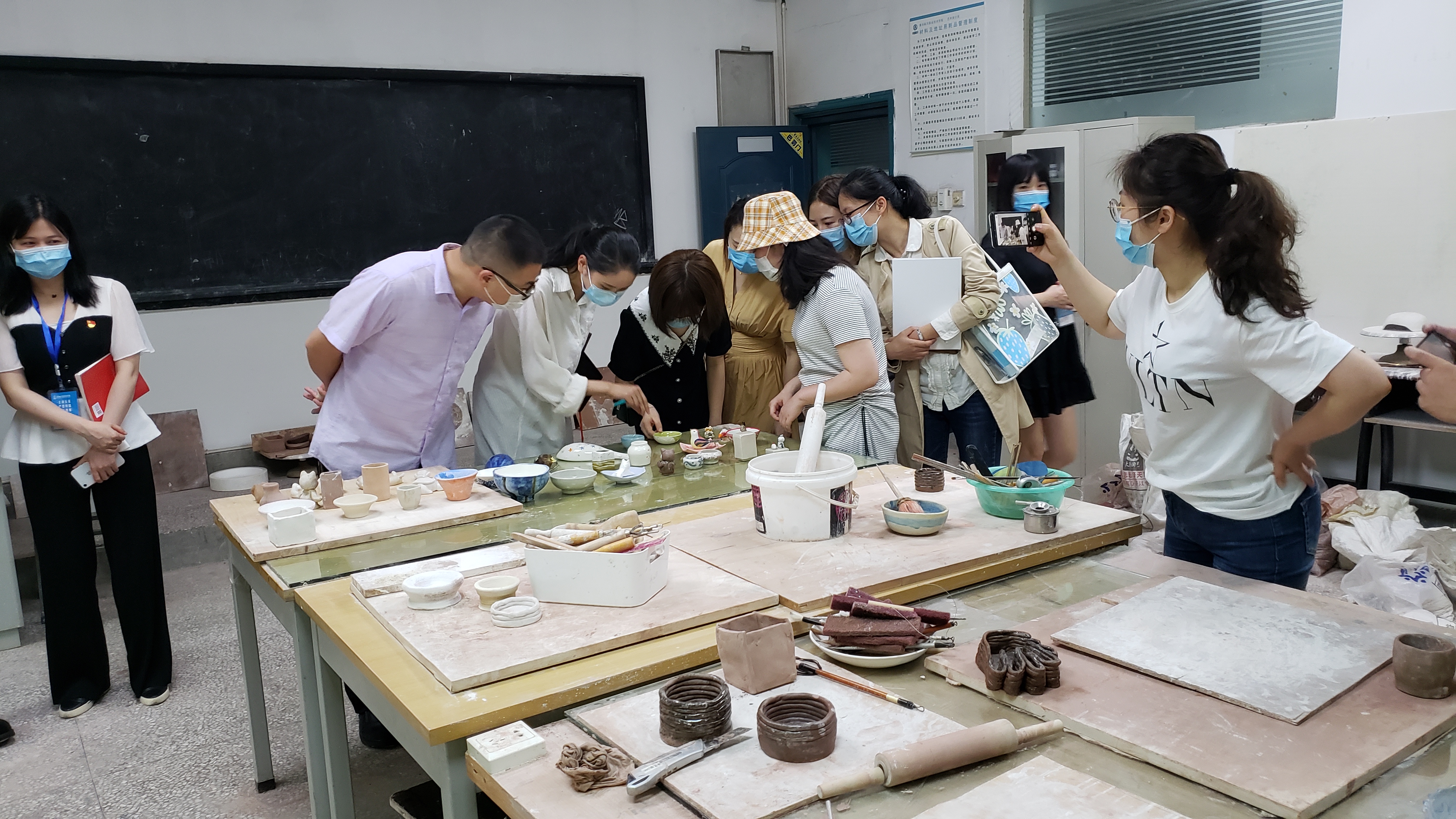建管系第二党支部党员同志们首先参观了艺术设计系工作室,实地了解了部分优秀学生作品展示和党支部文化建设。