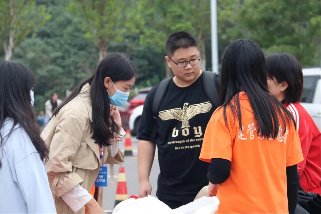 迎新现场,各部门、各系部早早集结、有序就位。疫情防控常态工作下,为确保新生平安入学,学校进行了周密部署,进校前测温、验码、核对身份,一项也不能少。而熙熙攘攘的人群里,那一抹建工“橙”足够让远离家乡的萌新们安心。他们积极热情地为初来乍到的新同学解答疑惑、搬运行李、指引接待,有条不紊地引导他们完成新生报到的所有程序。