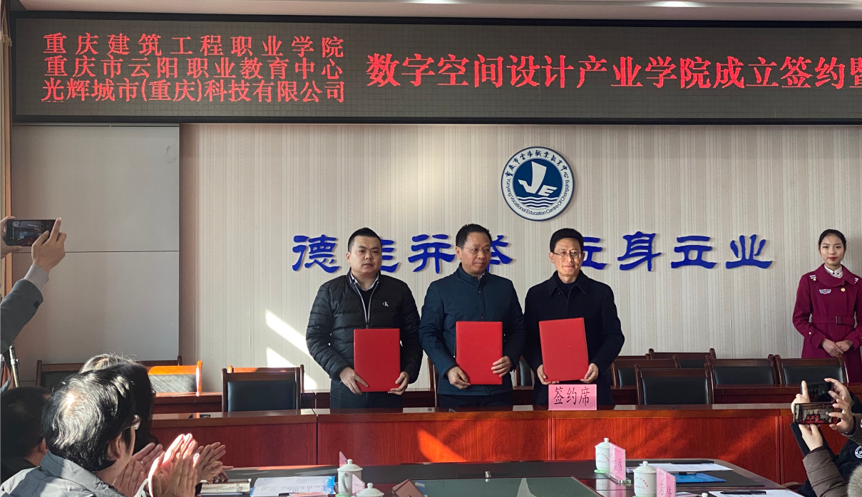1月19日,重庆建筑工程职业学院协同合作企业光辉城市(重庆)科技有限公司,在云阳职教中心成立数字空间设计产业学院,开启校企三方合作新篇章。