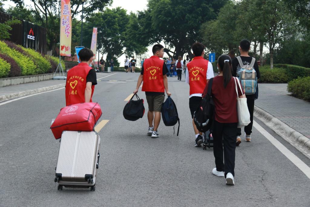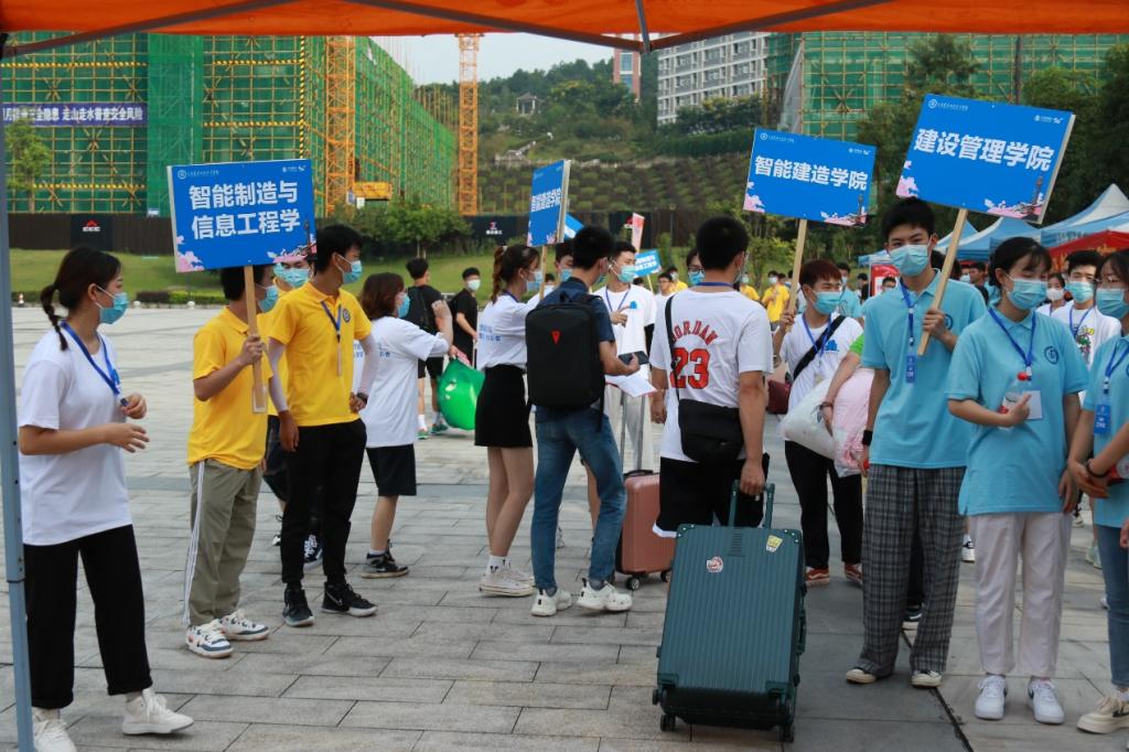 校外,学校在重庆市区各主要交通站点设置迎新接待点,安排迎新工作人员及志愿者热情迎接新同学。校内,学校设置了志愿服务站,安排学生志愿者全程为新生提供帮助。虽然天气炎热,各学院志愿者同学仍然坚守岗位,以便及时为新生提供帮助,他们用自己的辛勤付出展现出了建工学子的良好风貌。