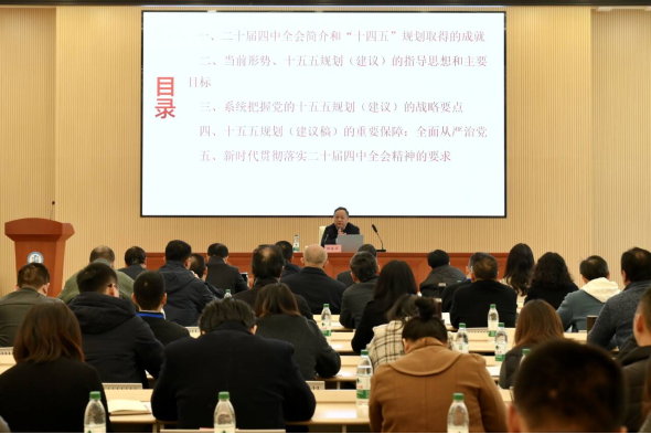 会议第一阶段,全体与会人员听取了党的二十届四中全会精神专题宣讲报告,报告由重庆大学马克思主义学院杜俊华教授主讲。杜教授紧扣全会核心要义,结合教育领域实际,系统解读全会精神内涵,为参会人员准确领会全会精神、推动实际工作提供了清晰指导。