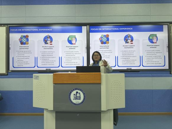 上午,王希希院长以《法国工程师教育—国际高等教育的典范》为题,系统介绍了法国工程师教育发展历程与整体概况,深入阐释了其特色鲜明的精英教育体系及工程师培养模式,详细梳理了法国学生从基础教育阶段升学至工程师院校、最终成长为专业工程师的全链条培养流程。