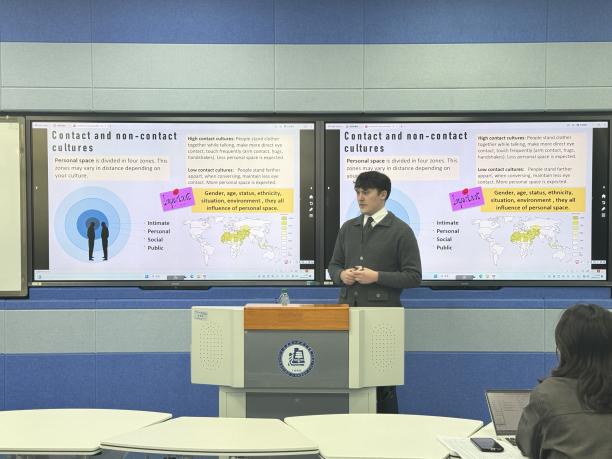 上午,Théo Daigney博士紧扣人工智能时代国际交流与合作特点,从跨文化情境的分析与理解维度、跨文化沟通工具、跨文化沟通内容、文化冲击应对、跨文化沟通能力培养、语言在文化调解中的作用等六个方面,系统阐释了不同文化背景下沟通方式、价值观念与行为模式的差异及成因。