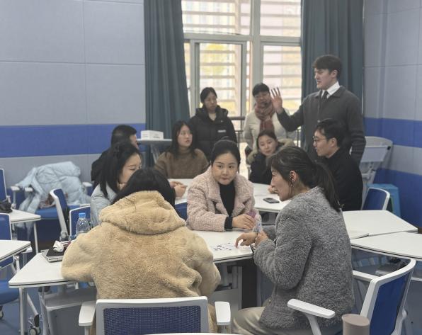 下午,Théo Daigney博士结合霍夫斯泰德的文化维度理论和丰富实践案例,深入分析了不同国家在社会等级制度、个人主义与集体主义等维度的文化特征与差异,并通过经典电影片段解析和IBM企业管理制度实例,展示了文化差异在组织管理、团队协作和国际交流中的体现。Théo Daigney 博士还邀请参训教师进行“五招妙技”纸牌游戏,通过情境模拟和角色扮演,引导教师在实践体验中思考跨文化沟通中的问题与策略,加深了其对跨文化沟通方法与技巧的理解与掌握。活动现场气氛热烈,教师们踊跃参与互动、积极分享见解。