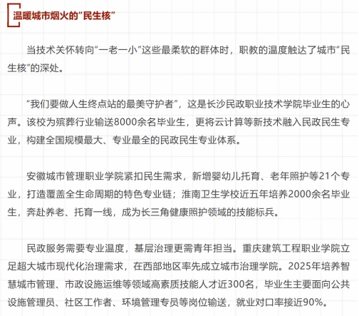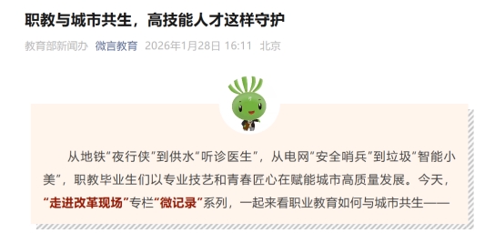 近日,学校城市治理学院的办学实践与育人成效获教育部点赞认可,并在其新闻办官方微信公众号“微言教育”推出的“职教与城市共生”专题报道中获得宣传报道。