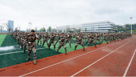 下午14时30分,广阳校区总结大会如期举行,延续两校区军训总结的庄重氛围。625名同学组成的匕首操方阵,招式干练利落、精神昂扬,尽显新时代青年青春锐气;1900余名同学的军体拳展示,气势如虹、震撼全场,震天呐喊响彻整个运动场,既生动诠释了青年学子的热血担当,也见证了他们从懵懂青涩到坚毅果敢的华丽蜕变,充分展现出建院学子昂扬向上的精神风貌。