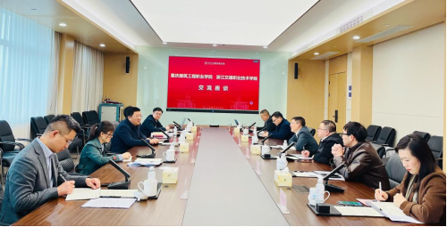 当日下午,调研团队抵达浙江建设职业技术学院,该校党委副书记、校长汤宗礼介绍了学院办学特色与发展成果。郑周练介绍了我校此次调研的交流重点,双方围绕产教融合体制机制创新、校企合作办学等核心工作,结合各自办学实际,交流了实践经验,探讨了合作发展新路径,为双方后续加强校际交流、互学互鉴奠定了良好基础。