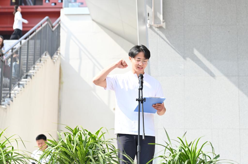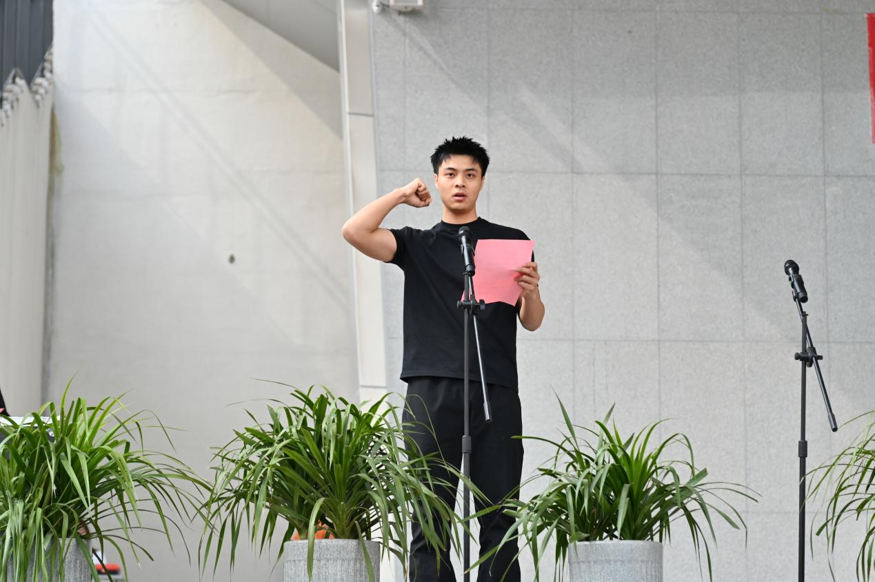 运动员代表数字设计学院胡家林同学与裁判员代表马炎老师先后郑重宣誓,恪守体育道德、公平参赛、公正执裁,共同守护纯粹赛场。