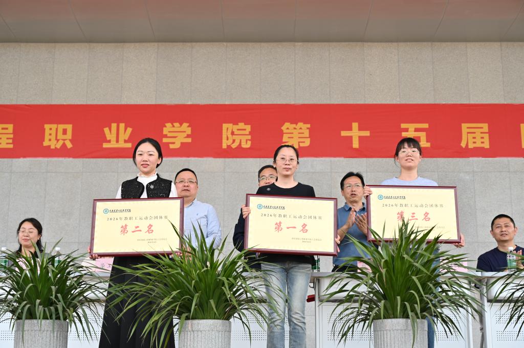 学生组女子团体奖、男子团体奖、入场式最佳风采奖,以及教职工工会小组团体奖依次颁发,获奖代表依次登台,接过证书与奖牌,自信从容、荣光闪耀。