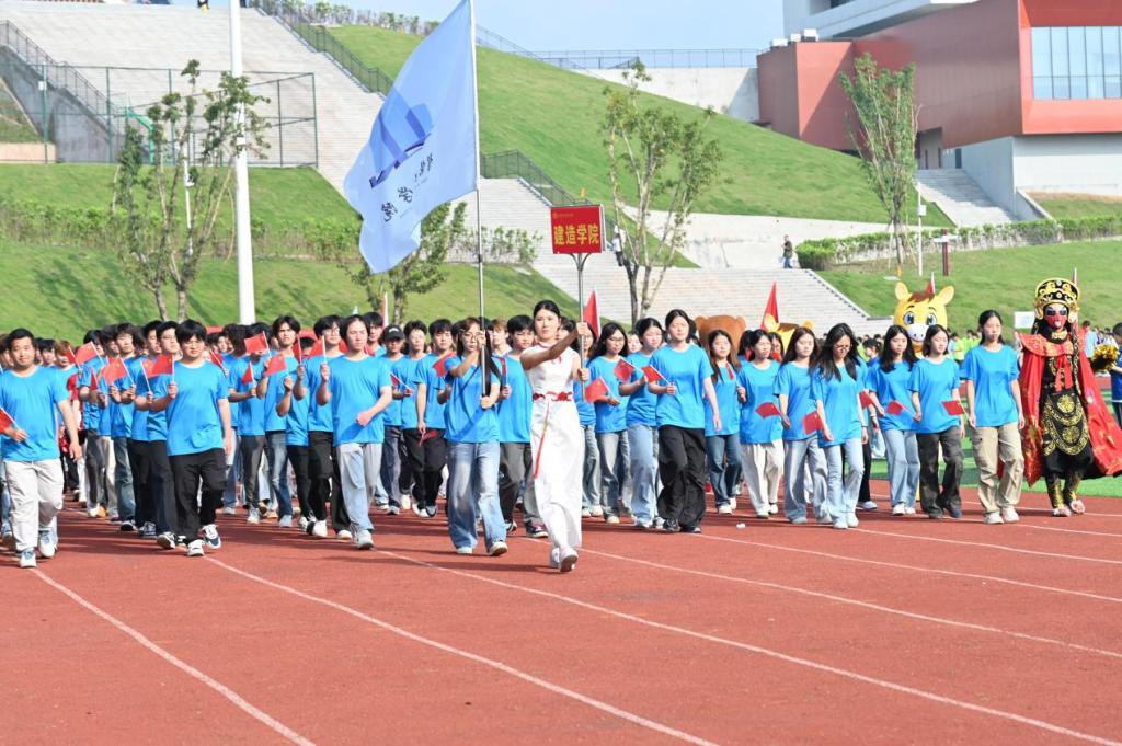入场式上,国旗方阵昂首在前,彩旗队、鲜花队意气风发,各二级学院、教职工、留学生等方队依次入场。大家步伐铿锵有力、身姿挺拔昂扬,口号振奋响亮,尽显建工师生昂扬向上的精神风貌。