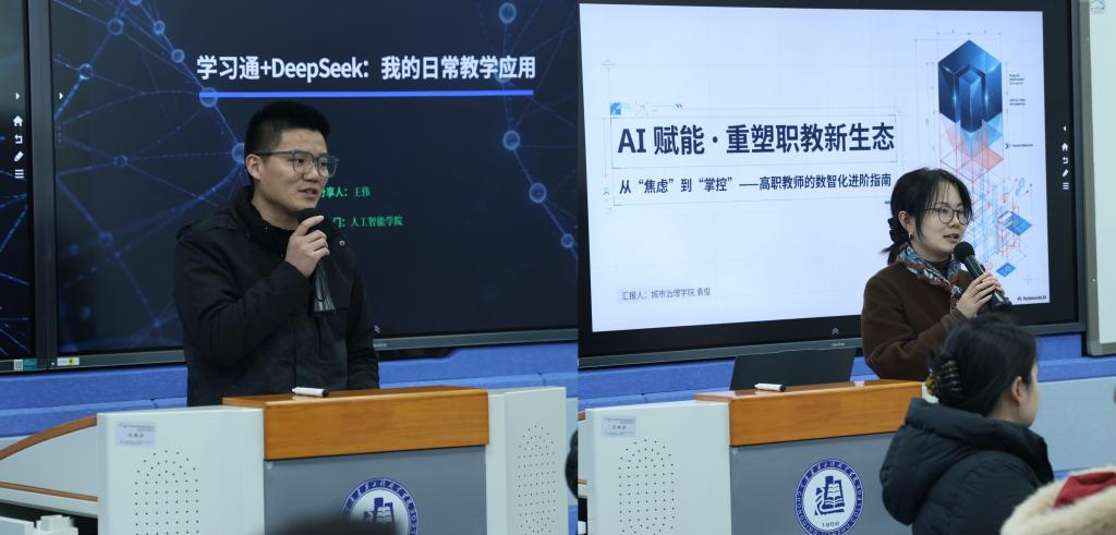 活动打破传统讲座模式,采用“战队闯关”的互动形式开展。教师们通过“缘分分组”迅速组建四大战队,在集体智慧中确定了富有创意的队名与组长。在随后的“先锋分享”环节,人工智能学院王伟老师以《学习通+DeepSeek:我的日常教学应用》为题,分享了实用高效的智慧教学组合策略;城市治理学院袁俊博士从数字教学改革前沿出发,提供了兼具创新性与严谨性的AI工具包与教学思路,为后续闯关活动注入了灵感。