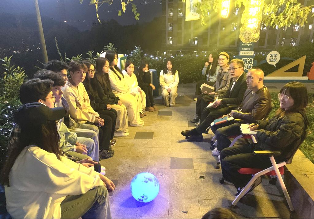 11月13日晚,学校“黄桷树下话成长”暖心交流活动在广阳校区温情启幕。党委副书记郭光亮、党委学工部负责人、新疆内派教师和受助学生代表围坐树下,共话成长点滴,共绘未来蓝图。