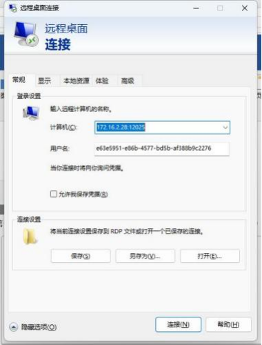 第十二步:点击 rdp 后 ,输入登录远程服务器的账号密码;