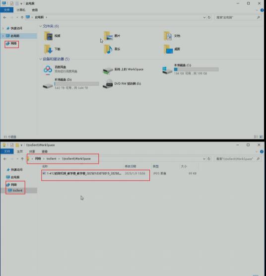 3、上传完成后返回服务器远程桌面-点击此电脑-选择网络可以找到刚才上传的资源。