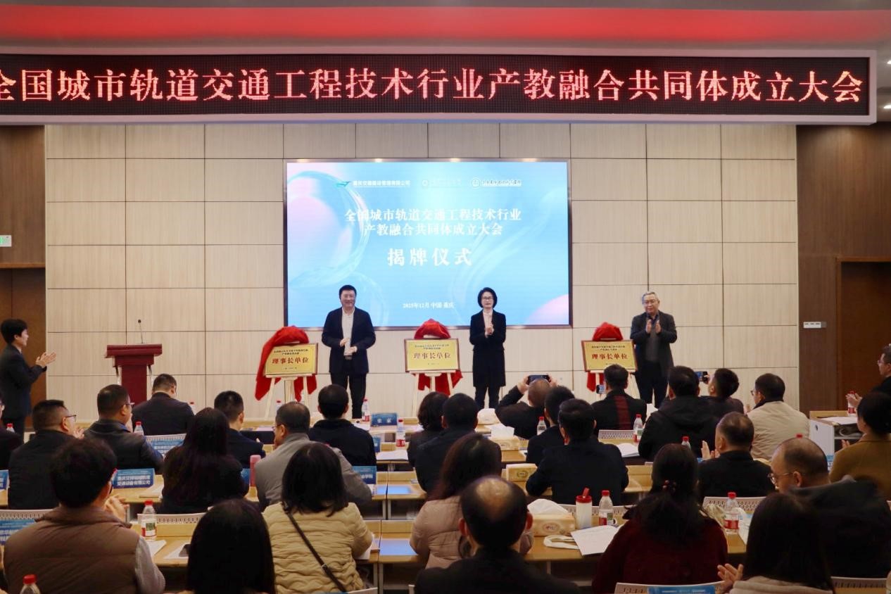 2025年12月13日,全国城市轨道交通工程技术行业产教融合论坛暨共同体成立大会在重庆建筑工程职业学院隆重举行。本次大会由重庆交通建设管理有限公司、重庆交通大学、重庆建筑工程职业学院联合发起,汇聚行业69家企事业单位及高等院校共同参与,旨在搭建城市轨道交通领域产教融合新平台,为行业高质量发展注入新动能,推动城市轨道交通高质量发展。本次大会分三个阶段进行。
