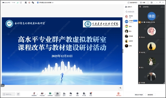 为拓宽专业建设视野,借鉴跨领域课程改革与教材建设先进经验,12月11日,城市轨道交通工程技术专业群产教虚拟教研室组织骨干教师,以线上方式参加了由会计信息化课程虚拟教研室主办的“课程改革与教材建设研讨活动”。本次研讨活动以线下形式举办,城市轨道交通工程技术专业群产教虚拟教研室成员通过线上平台全程参与学习。