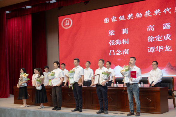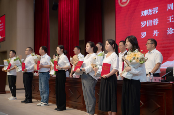 党委副书记、校长郑周练教授通报了2024-2025学年度教师获奖情况,并宣读了表彰决定。大会对国家级奖项获得者、“优秀教师”“优秀辅导员”“优秀教育工作者”“师德师风标兵”等先进个人进行了表彰,与会领导为获奖教师代表颁发荣誉证书。