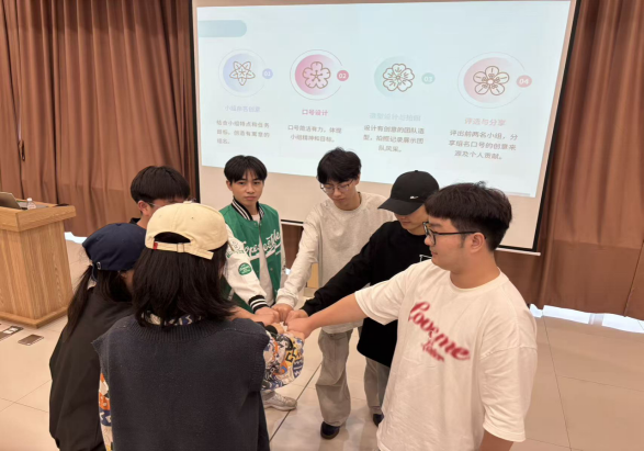 活动在一段轻松愉快的“破冰”舞蹈中拉开序幕,迅速消除了成员间的陌生感。随后进行了“滚雪球”式自我介绍,不仅锻炼了记忆与表达,更在欢声笑语中增进了彼此的了解。同学们在安全、包容的氛围中,坦诚交流自己对未来的憧憬、对职业价值的理解以及对财富的看法。思想的碰撞激发出许多深刻的思考,帮助大家澄清价值观,更清晰地认识自我与梦想的关系。各组成员群策群力,创作了极具特色的组名、响亮口号以及充满活力与创意的团队造型,用镜头定格了属于“轨道先锋”的青春风采。不仅展示了各组的智慧与协作成果,更让同学们深刻体会到团队的力量。
