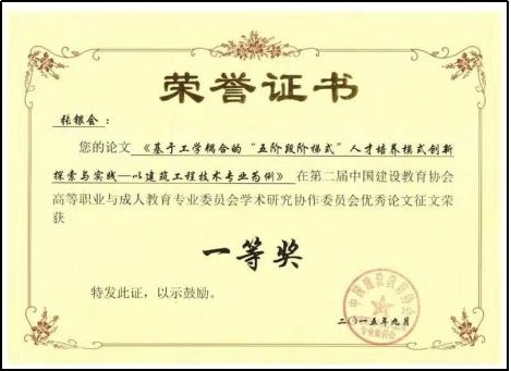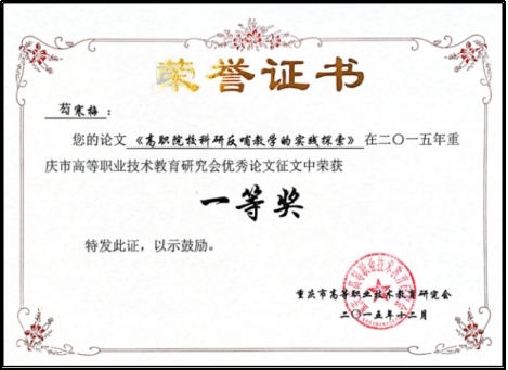 2015年重庆市高等职业技术教育研究会优秀论文一等奖