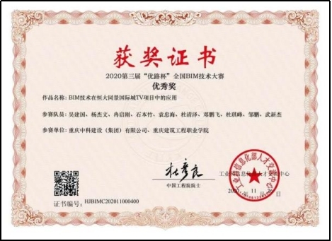 2020年“智建杯”中国智慧建造应用大赛智慧建造BIM创新应用金奖