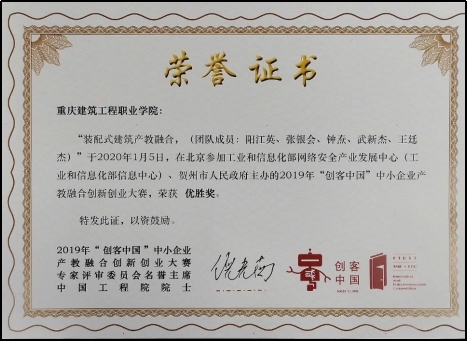 2019年“创客中国:中小企业产教融合创新创业大赛荣获优胜奖