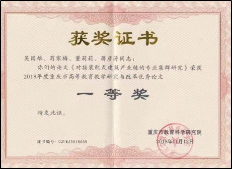 2018年重庆市高等教育教学研究与改革优秀论文一等奖