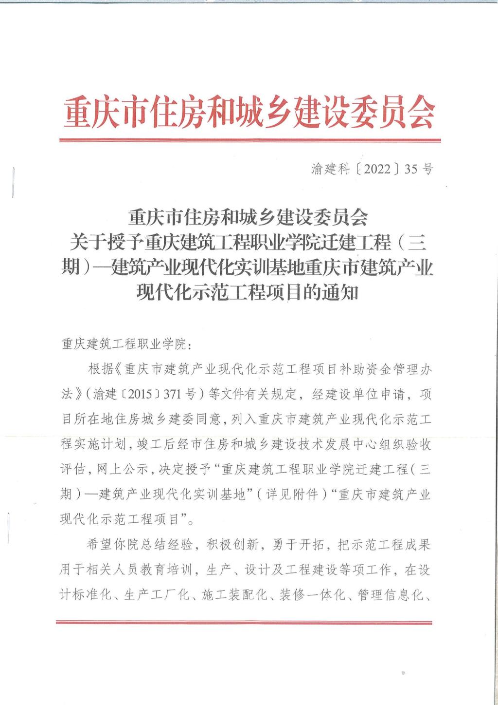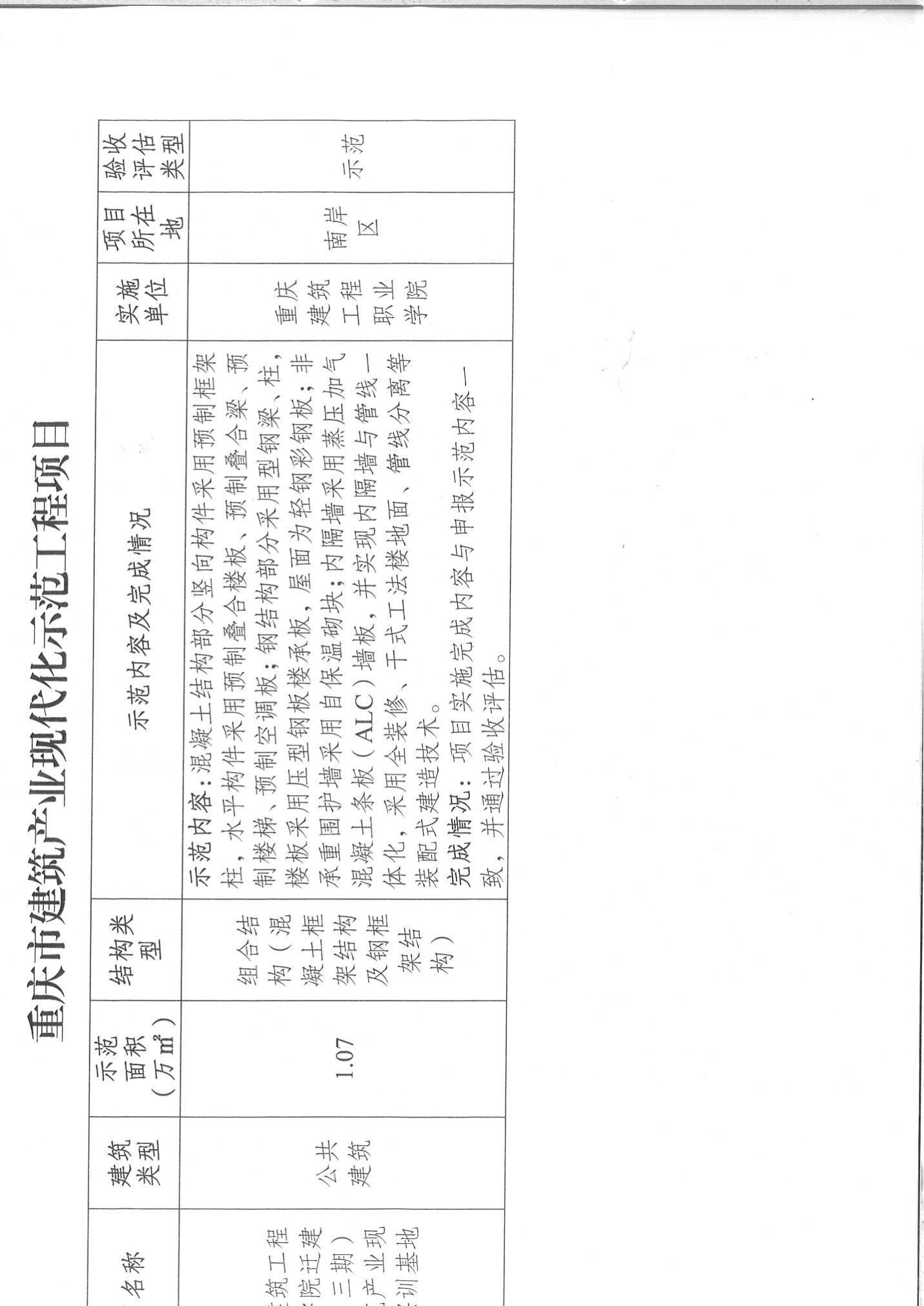 重庆市建筑产业现代化示范工程项目并列入可复制经验推广目录