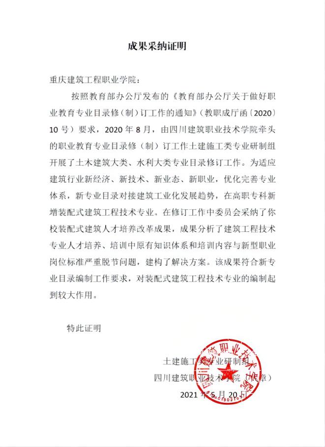 全国住房和城乡建设职业教育教学指导委员会土建施工类专业教学指导委员会专业研制组在编制《职业教育专业目录》(2021)中运用相关成果