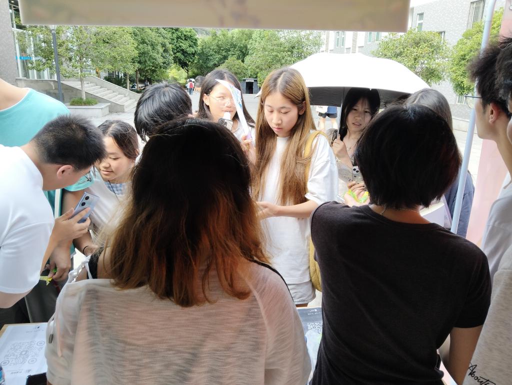 早晨8点,学生会各部门成员早早来到招新场地布置展位,摆放宣传展板、招新手册及报名表,为活动的正式开始做足准备。随着下课铃声响起,越来越多的同学聚集到小广场,纷纷驻足咨询各部门职能与招新要求。学生会成员耐心解答同学们的疑问,并结合自身经历分享在学生会的成长与收获,激发了大家的浓厚兴趣。