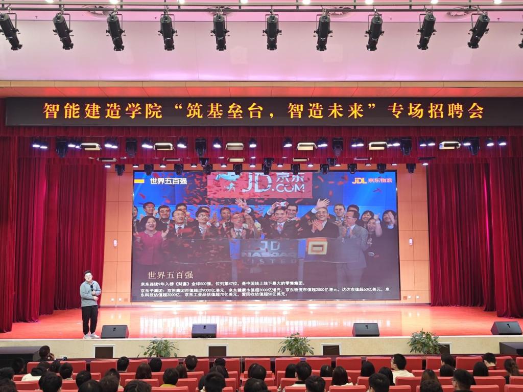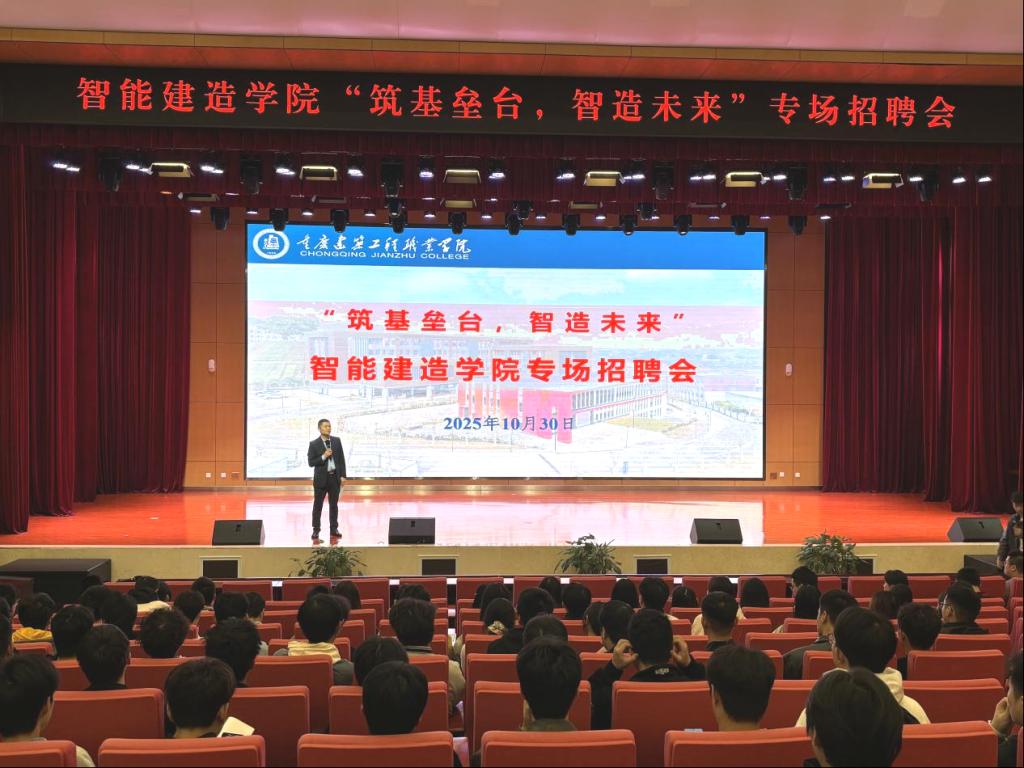 2025年10月30日,智能建造学院在学校学生活动中心多功能厅举行“筑基垒台·智造未来”专场招聘宣讲会,招聘宣讲会由智能建造学院党总支副书记崔接友主持。中国核工业二三建设有限公司、中国化学工程第七建设有限公司、京东物流、广东美的制冷设备有限公司等知名公司参会宣讲。