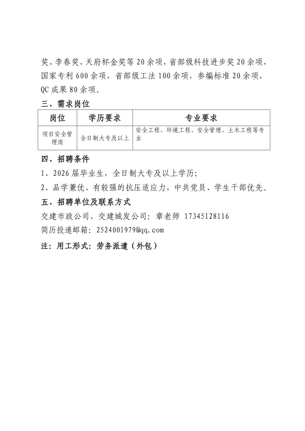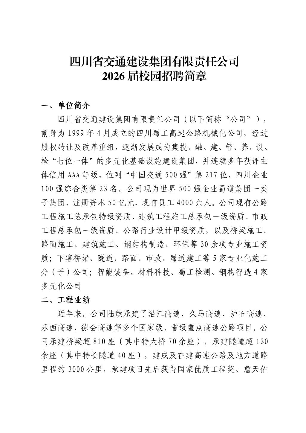 四川省交通建设集团有限责任公司2026届校园招聘简章