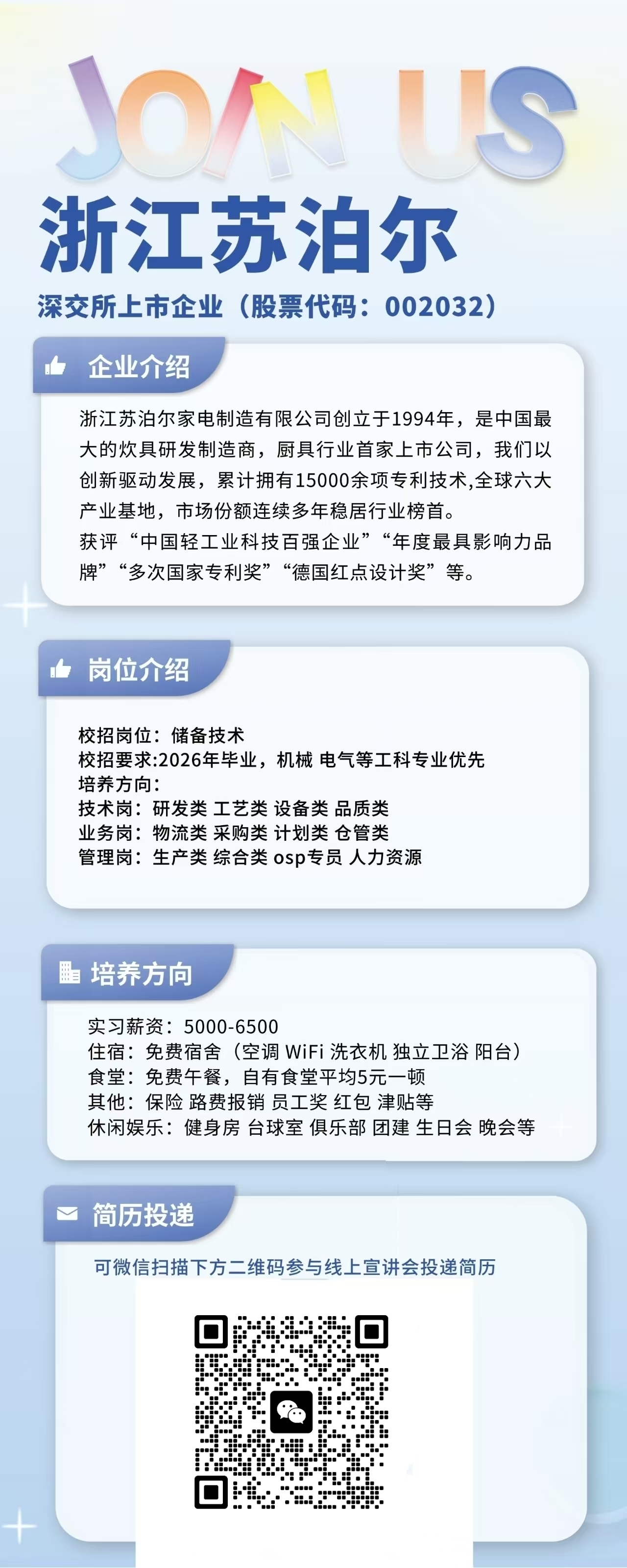 浙江苏泊尔招聘应届毕业生(扫码投递简历)