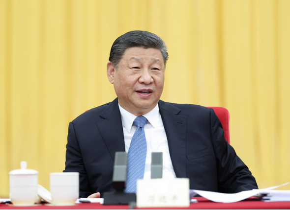 3月6日下午,中共中央总书记、国家主席、中央军委主席习近平看望参加全国政协十四届三次会议的民盟、民进、教育界委员,并参加联组会,听取意见和建议。 (新华社记者 王晔/摄)