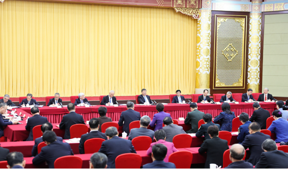 中共中央政治局常委、全国政协主席王沪宁,中共中央政治局常委、中央办公厅主任蔡奇参加看望和讨论。