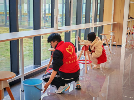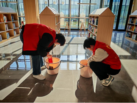活动伊始,学生志愿者们迅速进入工作状态,现场分工明确、协作有序。有的专注擦拭图书柜,细致清理柜体缝隙中的灰尘;有的认真擦拭桌椅,确保桌面无污渍、无杂物;还有的专注清洁玻璃,力求让每一块玻璃都洁净透亮。擦拭过程中,志愿者们始终秉持一丝不苟的态度,不放过任何一个卫生死角,全力让图书馆一楼的公共设施焕然一新。图书馆工作人员也给予了大力支持,及时提供了抹布、清洁剂等必要清洁工具,为活动的顺利开展提供了有力保障。