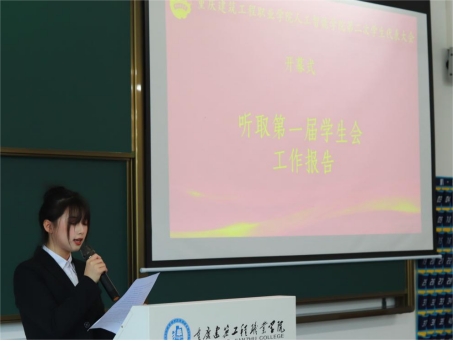 上一届学生会主席周宣伊在大会做了上一届学生会工作报告。