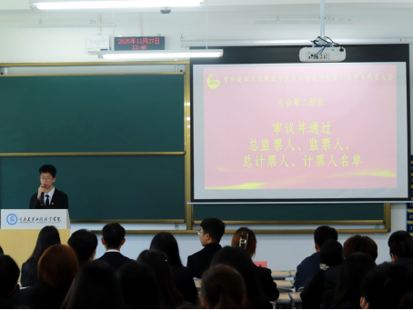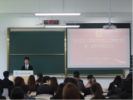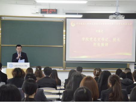 金秋硕果,盈盈枝满,建工校园,生机盎然。为进一步加强学生管理,完善学生管理制度和维护学生权益,推动院学生会工作高质量发展,11月27日,人工智能学院第二次学生代表大会在院党总支和校学生会的高度重视和关怀下顺利召开。人工智能学院党总支书记、院长别牧、党总支副书记李雪、办公室主任王毅、学工办主任胡君、团总支书记刘晨,学院全体辅导员及来自数字设计学院、财经商贸学院学生会代表,全院72名学生代表参加开幕会。