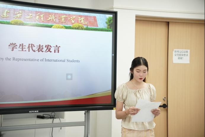 仪式上,别牧院长首先进行开班致辞,向远道而来的国际学生表示欢迎,并详细介绍了学校办学特色与发展情况。随后,班主任与国际学生代表依次发言,班主任表达了做好学生服务与管理工作的决心,留学生代表分享了来华求学的期待与愿景。仪式现场,参会领导为全体国际学生佩戴校徽,标志着他们正式成为重建工院的一员,全体人员合影留念,定格这一重要时刻。