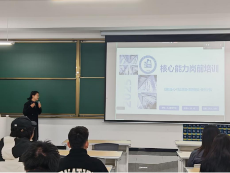 2025年12月5日上午10:30,人工智能学院采用“线上直播+线下授课”相结合的方式,在校园知新楼D1-1-103为计算机应用技术专业毕业班学生举办实习岗前培训。本次培训特邀行业专家,北京新大陆时代科技有限公司邓瑜主讲,以“技能强化・行业前瞻・素养塑造・安全护航”为主题,为即将踏上实习岗位的学子搭建全方位指导平台,打通校园与职场的衔接通道。