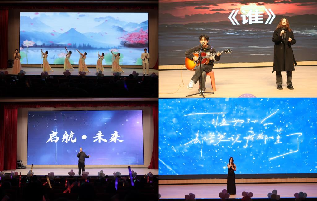 晚会在“啥啥不缺”乐队的激情演奏中拉开帷幕,以“初见·新光”“绽放·风采”“启航·未来”三大篇章串联,融合舞蹈、歌曲、弹唱、乐器等多种表演形式,共同勾勒出一幅生动而饱满的青春画卷。